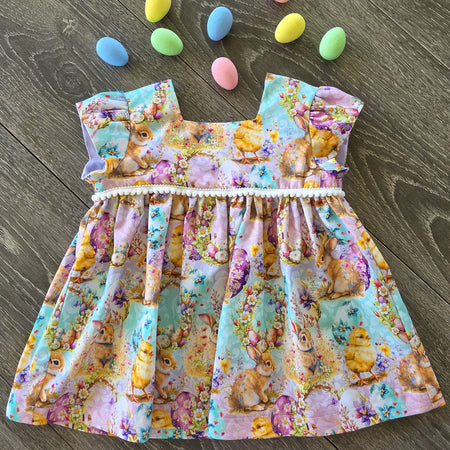 Baby Girls Handmade Bunny Print Dress and Headband Set - Size 1