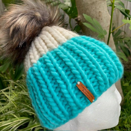 My beanies have removable fake fur pompoms - the pompoms are affixed to a button inside the top of the beanie - tied with a bow, you can undo it and remove the pompom either for washing, or for a different look. Then you can easily pop the pompom back on. And if you are a person who doesn't like a pompom, I will keep the pompom off.