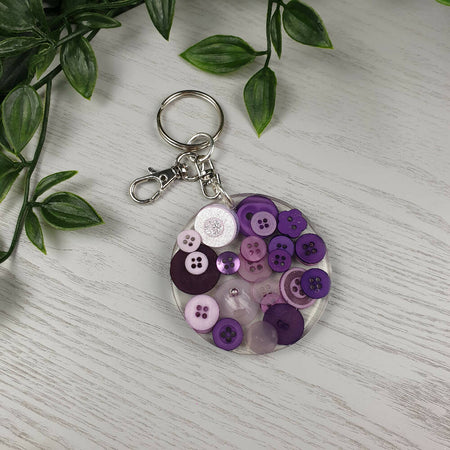 Keyring Buttons Round Resin Blue Pink Green Cream