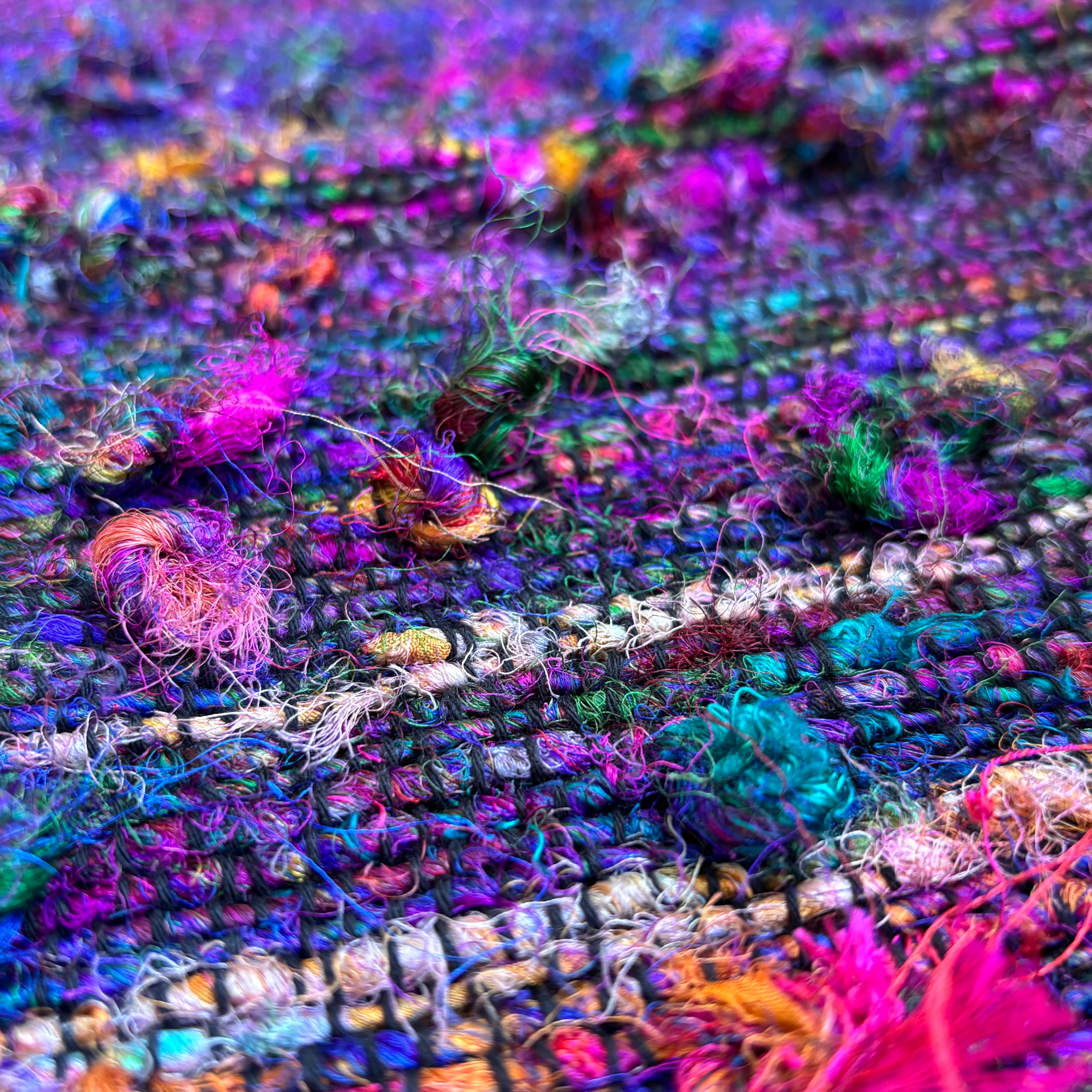 - I'm also drawn to the colours and unique textures of materials I source from op shops and other repurposed yarns.