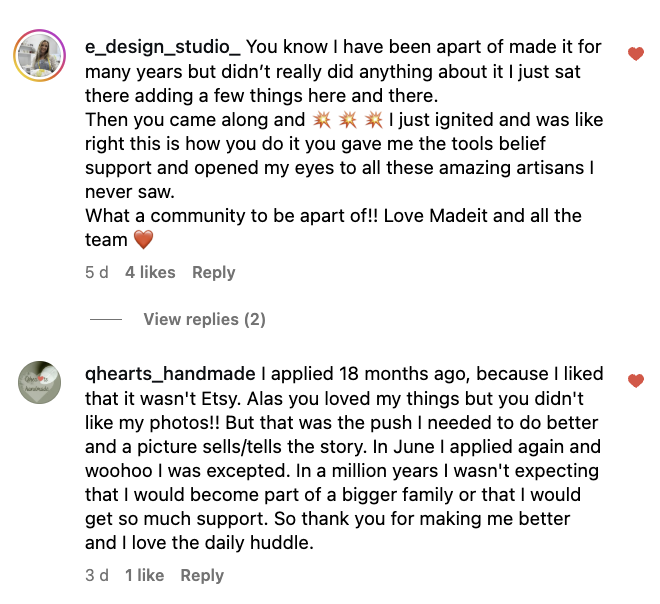 This helps us make sure you’re a great fit for the platform and that Madeit will work for you too.