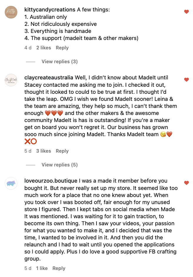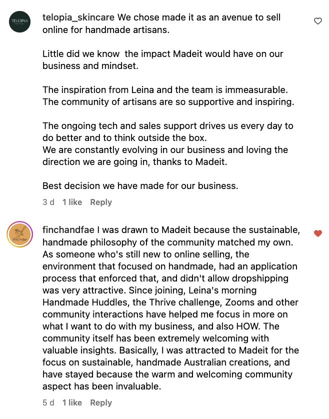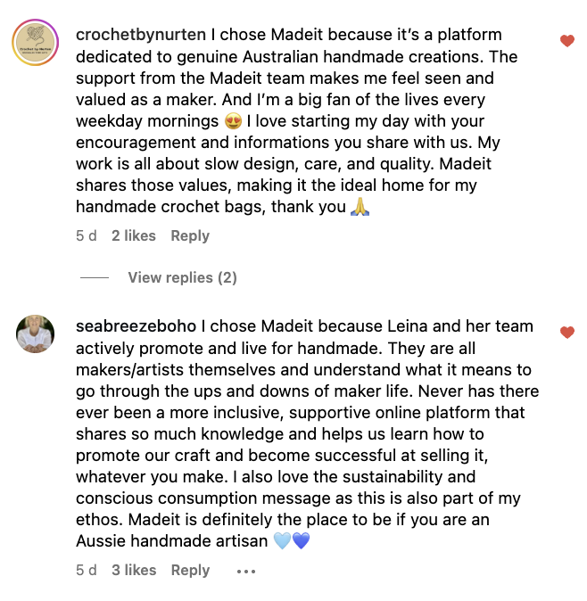 If you're an Australian makers and you want more in your business and more in yourself, this is the space. If you want shortcuts, quick sales, or a place to blend in with mass produced goods, Madeit will not feel right.