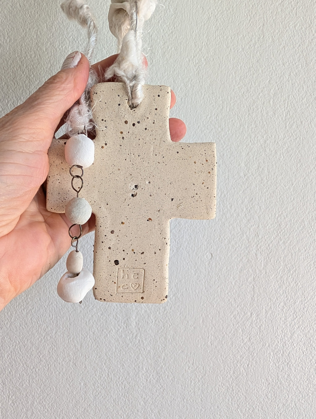 In a world that feels busy and noisy, this hanging ceramic cross offers a quiet point of calm.