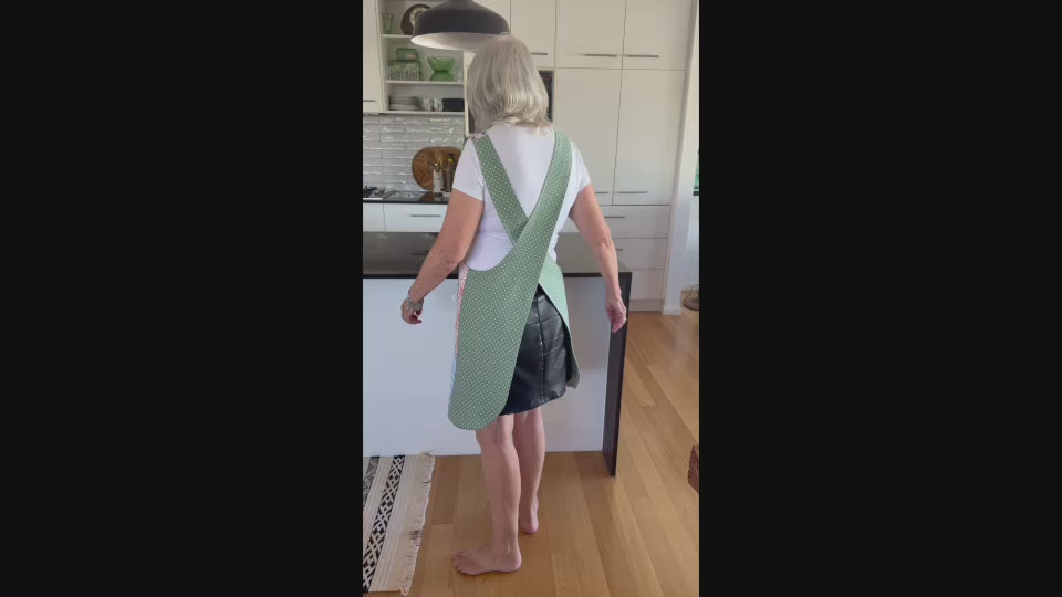 This Amalfi coast Japanese style, cross back apron will add colour and comfort to your cooking or craft. A comfortable apron within no ties and two pockets for your phone and other essentials.