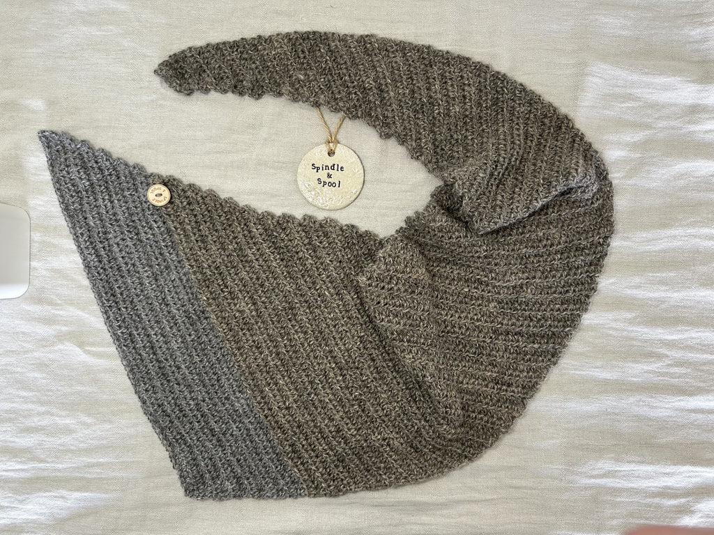 The scarf is adorned with a simple wooden Spindle & Spool button making it an eco-conscious option, as both the fibres and button are naturally sustainable and compostable, ensuring that this handcrafted item can return to the earth after many cherished years, rather than adding to the enormous problem of textile waste produced by the mass made fashion industry.