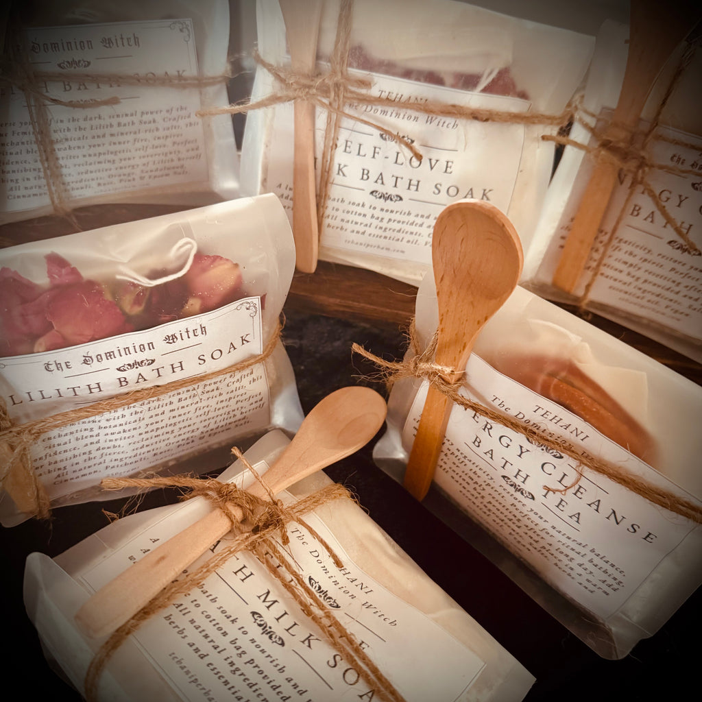 Lilith Bath Soak - Immerse yourself in the dark, sensual power of the Divine Feminine with the Lilith Bath Soak. Crafted with enchanting botanicals and mineral-rich salts, this ritual blend awakens your inner fire, inspires confidence, and invites unapologetic self-love. Perfect for banishing doubt, reclaiming your sovereignty, and bathing in the fierce, seductive energy of Lilith herself. All natural ingredients: Orange, Sandalwood, Cinnamon, Patchouli, Rose, Pink & Epsom Salt.