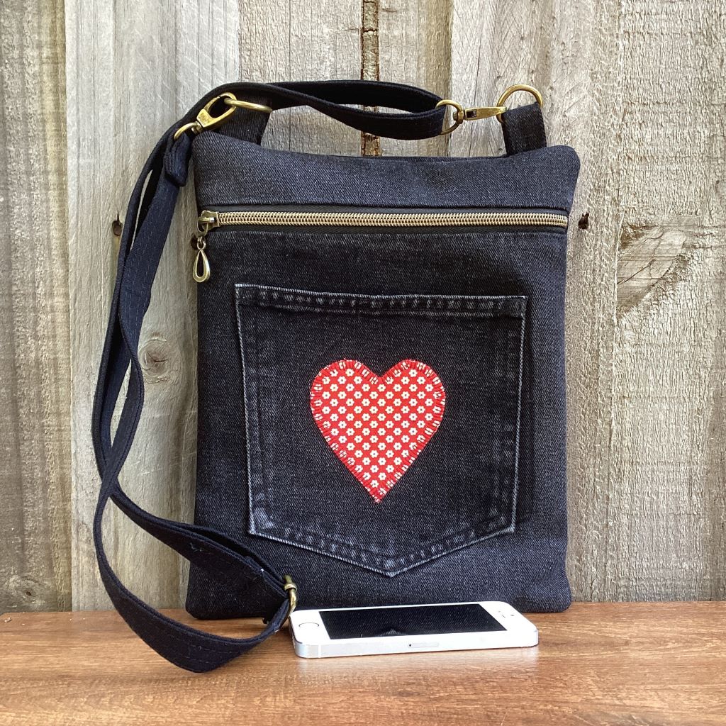 Black Upcycled Denim Cross Body Bag – Red Heart