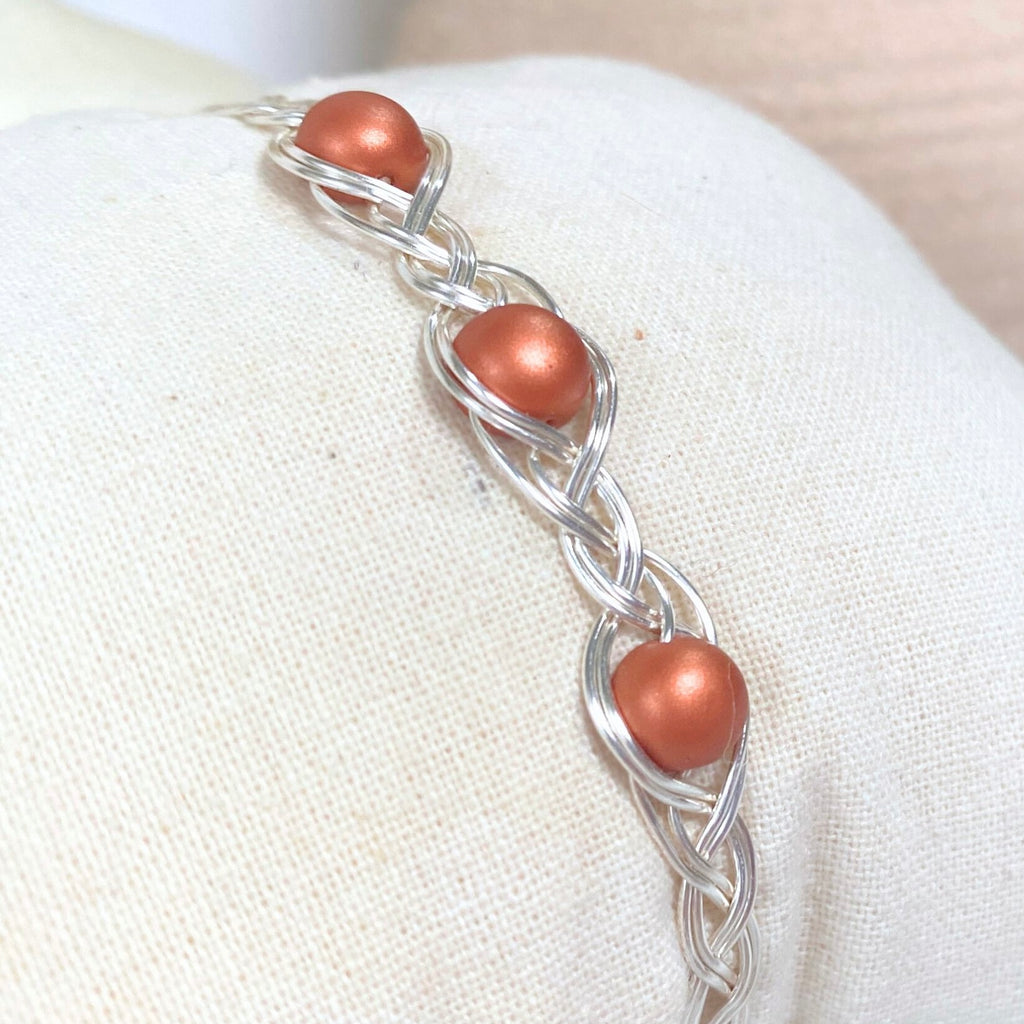 This stunning bracelet is handcrafted from beautifully lustrous silver wire, carefully braided and accented with rustic domed beads for a striking contrast.