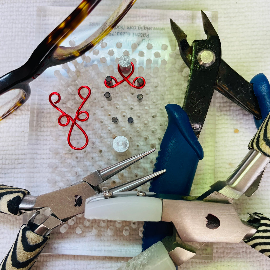Each wired piece is individually created using 18ga Gold Coloured Artistic Wire and a Jewellers Tool called a WijJig. Followed by hardened the wire pieces using a nylon hammer on a steel block.