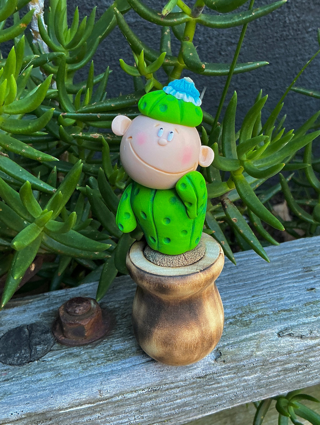 Made from polymer clay with wooden pots.