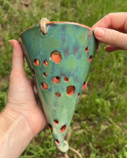The pot helps to prevent overwatering with ventilation holes ensuring good drainage. The cone shape prevents the lower part to stay too wet for too long, hence drying more uniformly.