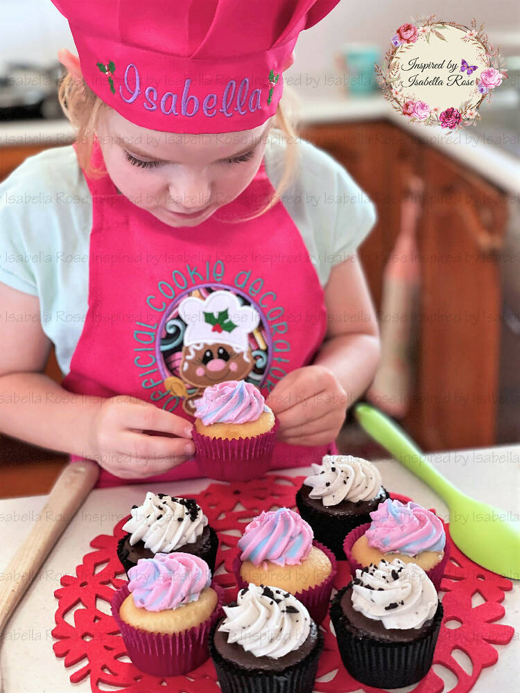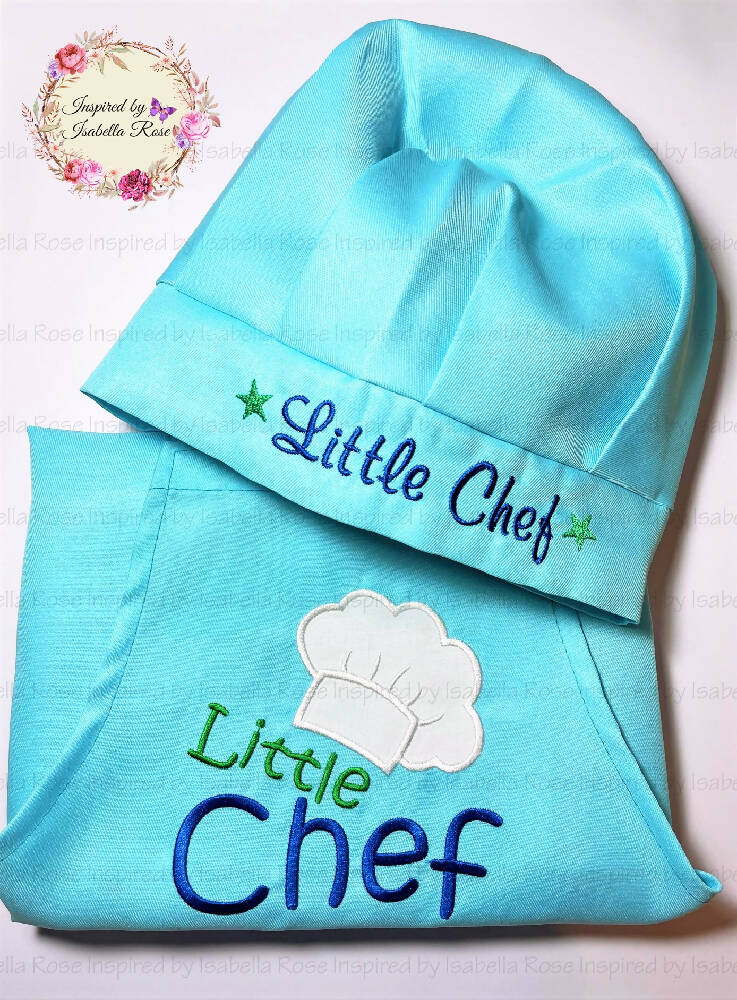 Childrens apron set, Mini chef hat, Embroidered, Made to order