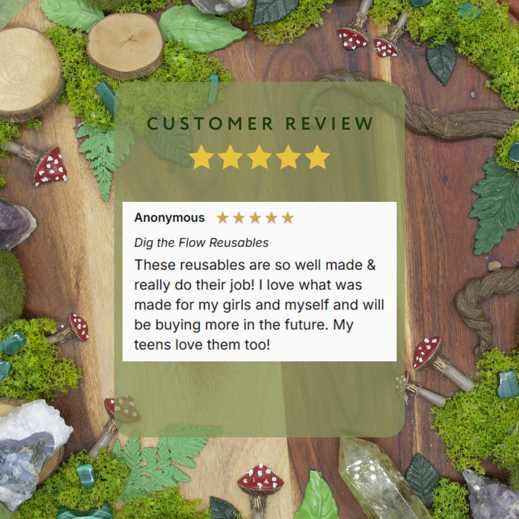 Elevate your period experience with reusable cloth pads - they're fun, reliable and easy to clean! Hand made in the northern suburbs of beautiful Brisbane, this one of a kind cloth pad was intentionally made just for you. Pads are worn "pretty side" up and easily click together with durable KAM snaps. Each pad is made with luxuriously soft fabrics, lots of TLC and leakproof softshell to ensure you can go about your day with total peace of mind. Change them whenever you need to, store them in a wetbag (or basket) and throw them in the washing machine when you're ready! Every single item has been made with lots of love and soul for you to embrace your period and 'dig the flow'.