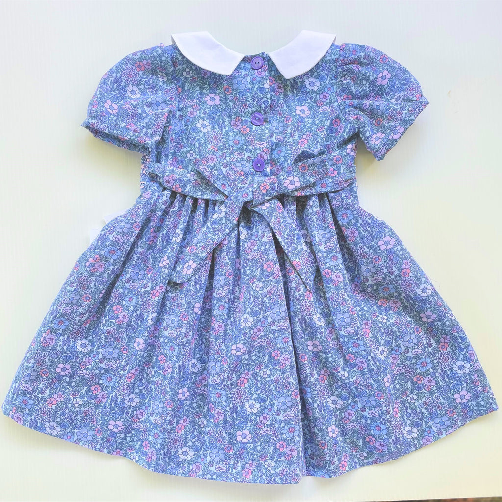 The dress is carefully gathered and smocked using my sewing machine to provide a finish which reflects hand smocking.