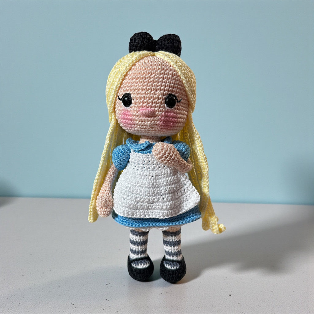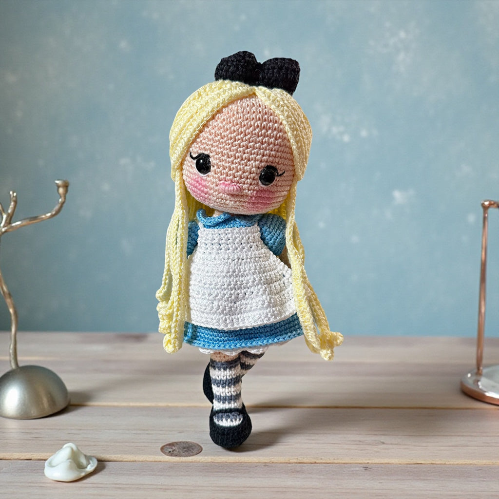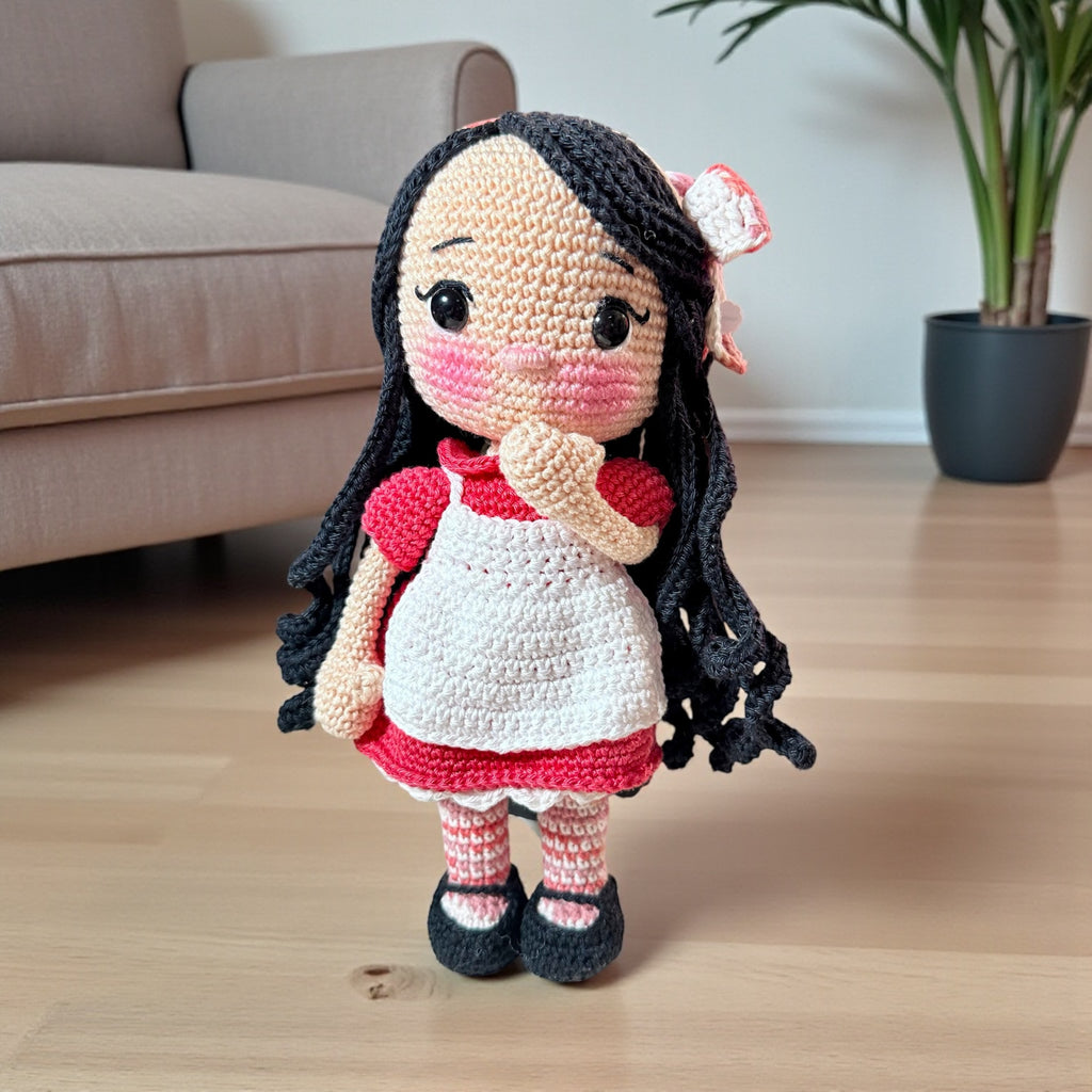 These little handmade dolls are stitched with love and a touch of magic. With rosy cheeks, bright twinkling eyes, and shy head tilts, each one feels like a tiny friend waiting to be cherished. Their flowing yarn hair, cozy dresses, and dainty aprons are carefully crocheted, stitch by stitch, with patience and care.