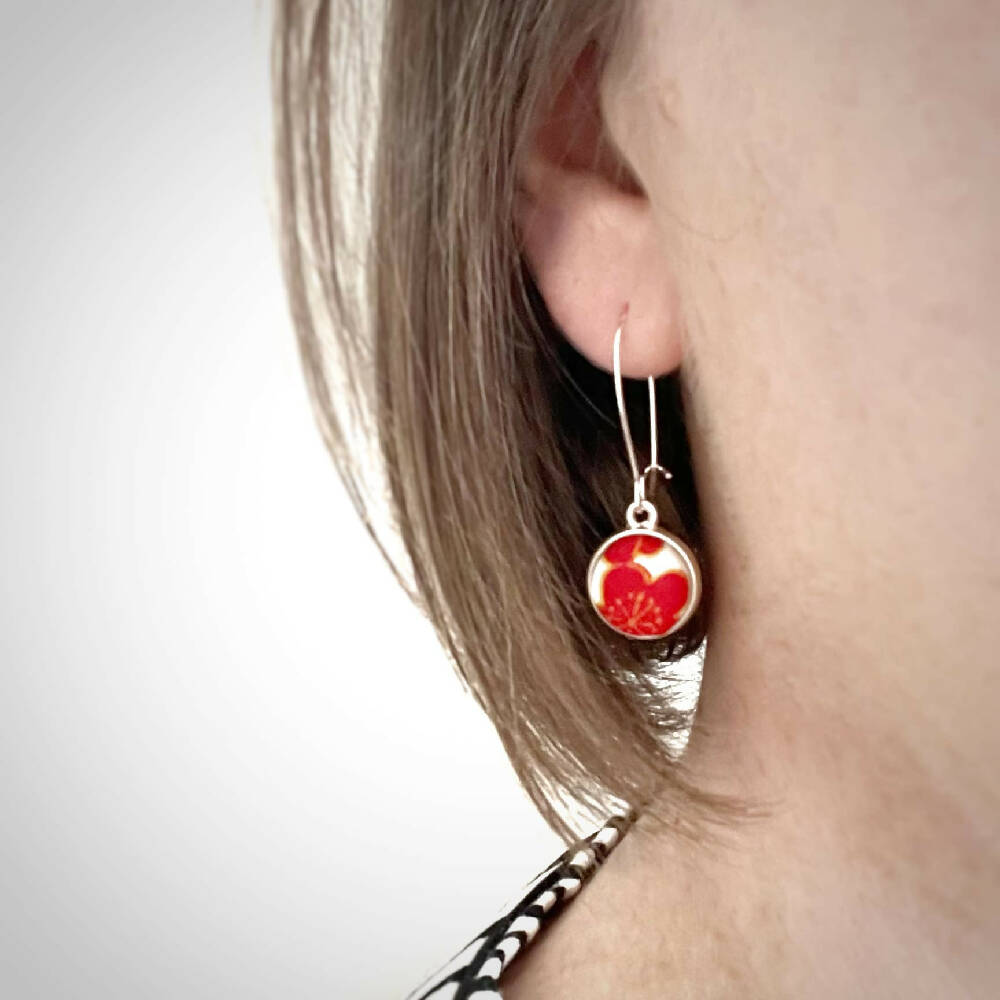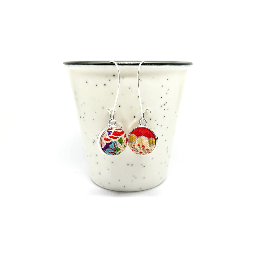 These original DOUBLE SIDED button earrings are handmade by me using beautiful Japanese Kimono. They feature 1.3 cm buttons, securely set in a silver plated, double bezel.