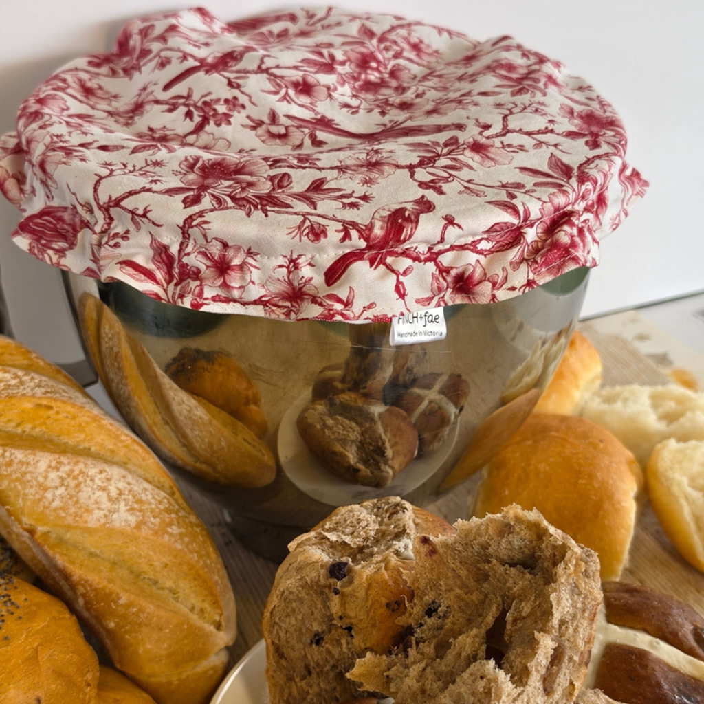 These elasticated dough proofing covers are designed to fit a 9.5-inch (24cm) KitchenAid bowl, and a sustainable, reusable and washable alternative to one-time use covers. Ideal for all types of dough, including bread, pizza, rolls and hot cross buns. Handmade with two layers of 100% cotton, the covers are reversible and the ideal gift for any dough-maker.
