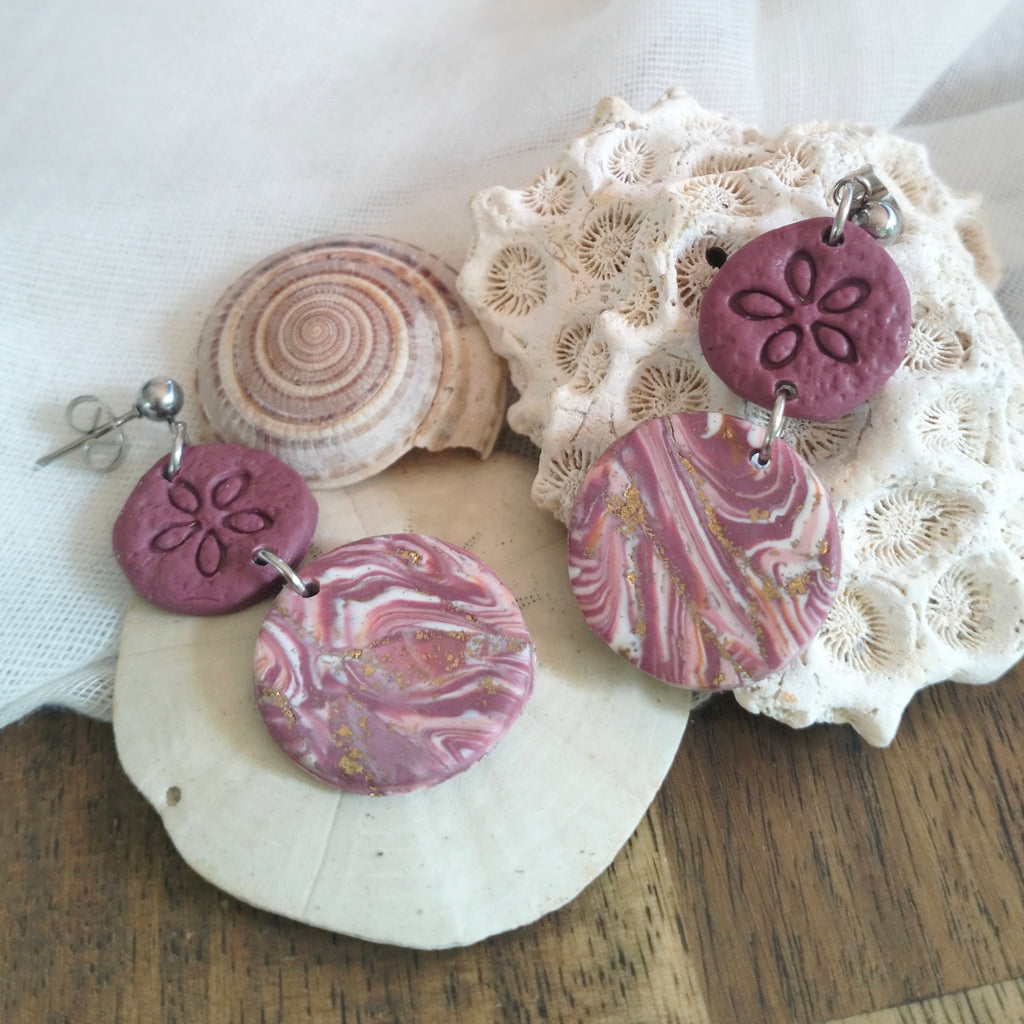 Earrings - Sand Dollar, Beachy, Purple Swirl- Artful Dangles