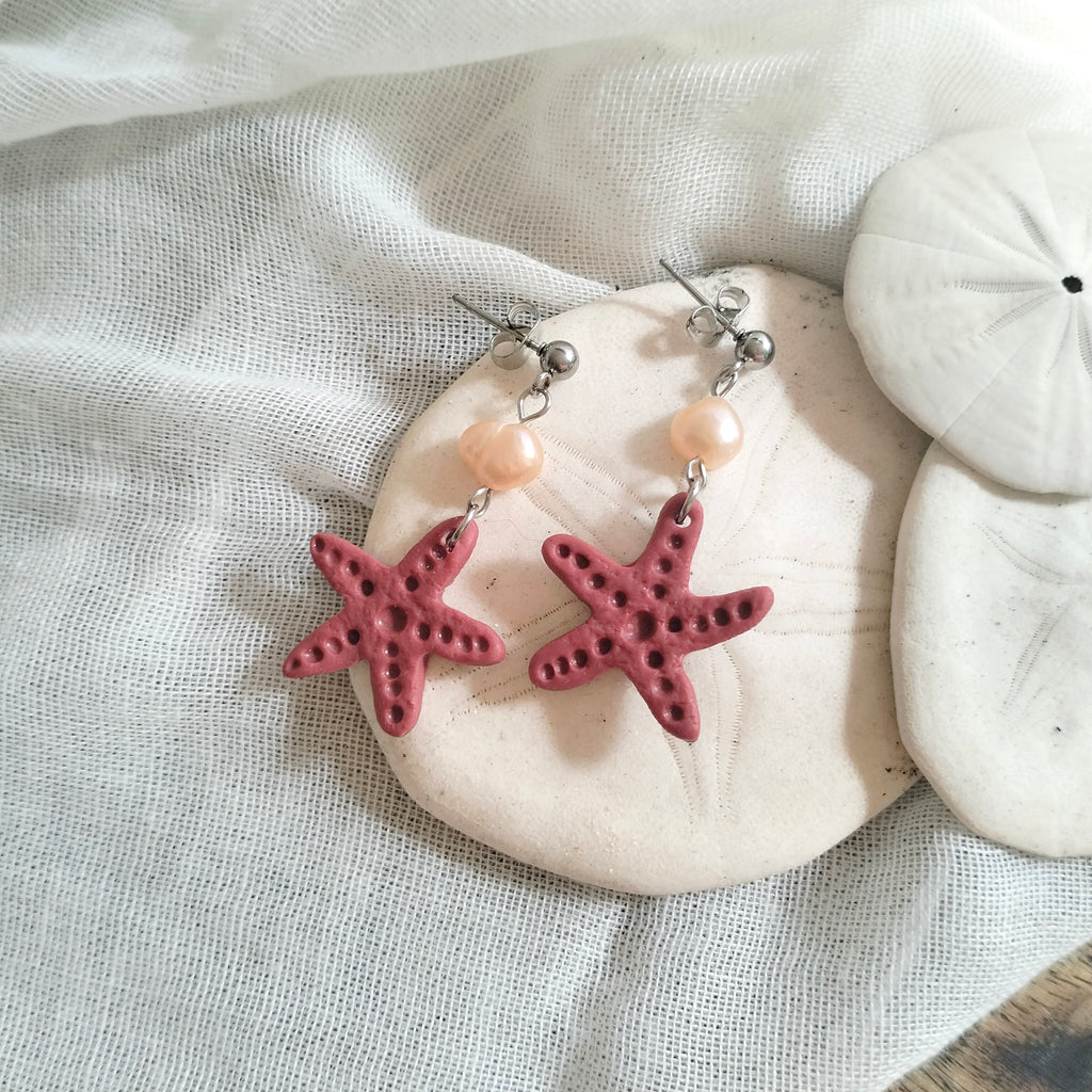 Earrings - Starfish and Fresh Water Pearls - Artful Dangles