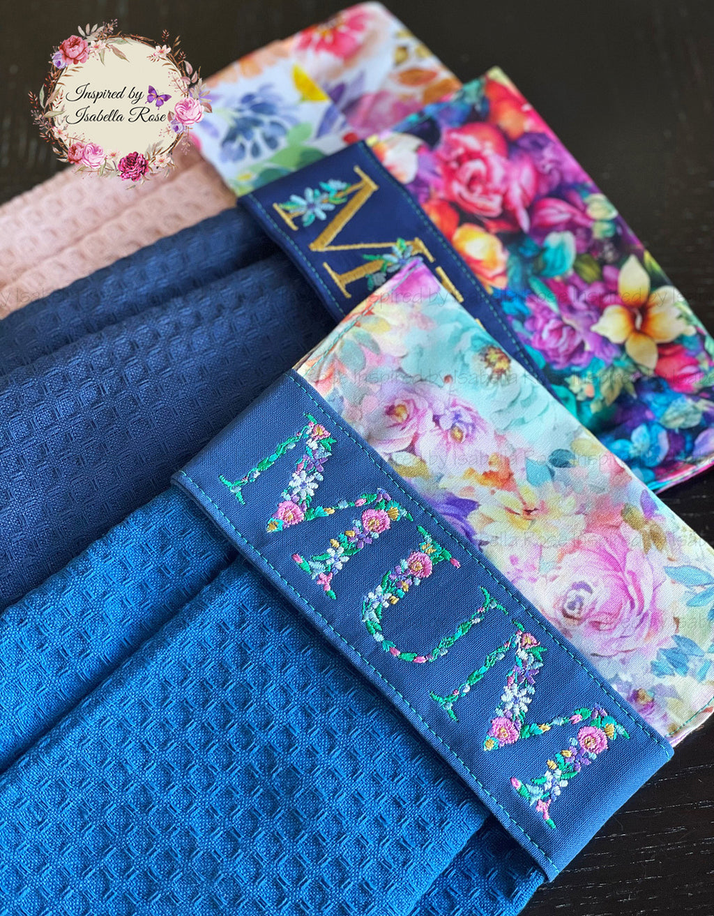 ♥ Stunning intricate flowers are embroidered to create the name of your choice. A pretty and delicate feature. Add in a matching tea-towel to create a beautiful unique personalised gift for someone special. Dad's/Fathers Day packs can also be created! Just ask x