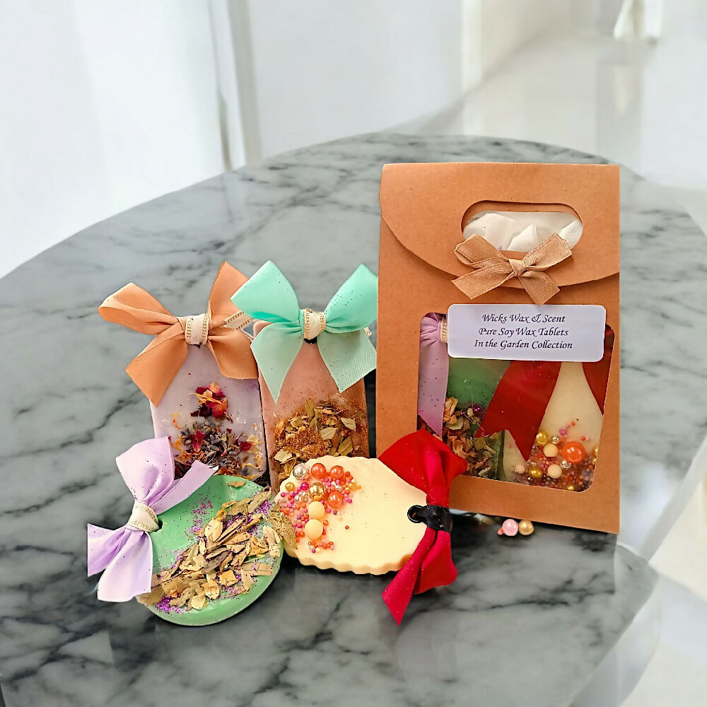 4 Scent Tablets - The Beach Party Collection of scented tablets. Send as a gift or immerse yourself for hours in a luxury fragrance. Each tablet is hand made. Colours and decorations may vary from batch to batch.