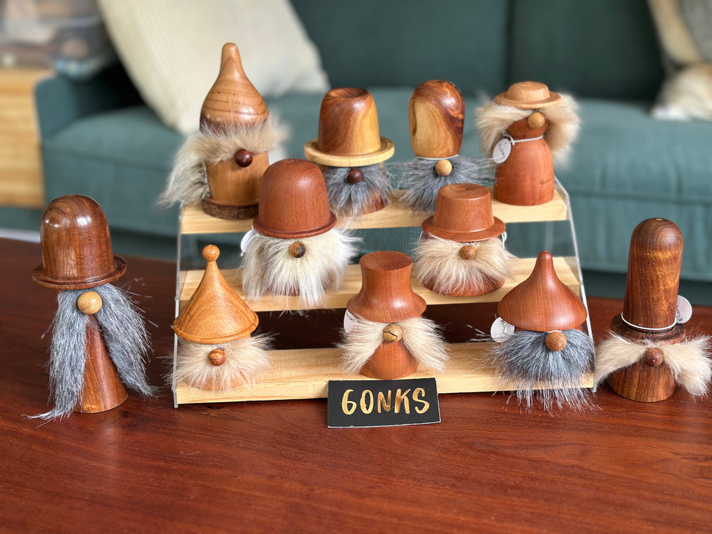 These little Gonks vary in size and timbers (5cm - 14 cm). They love to be located in various places around the house. We have named them, they each have their own personality.