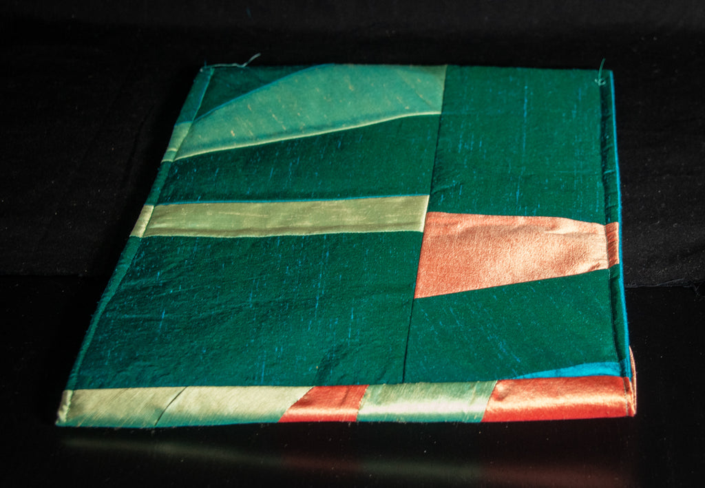 This padded pouch will help protect your tablet from falls, and look stylish as well. The pouch is made from Thai Silk off-cuts from a tailor in China (the light green and orange Thai Silks) and offcuts from a dress I made (dark green Dupion Silk).