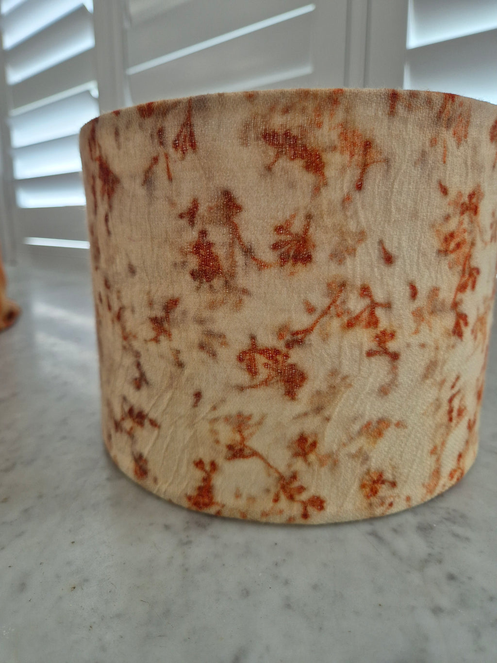 Natural plant tannins also appear on the fabric and add character.
