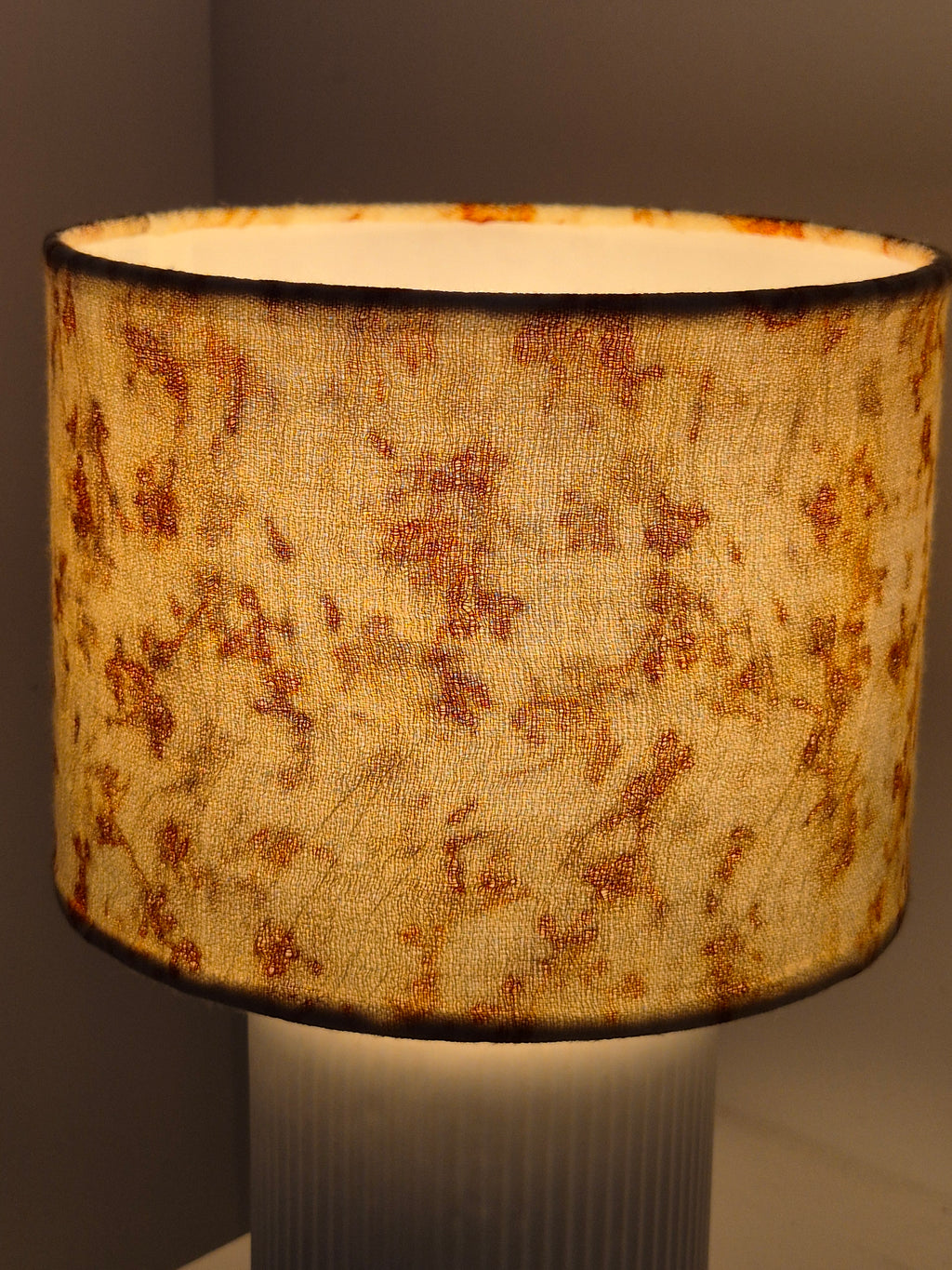 Then the fabric is washed and ironed and attached to the lampshade. The top and bottom edges are tucked in with a rolled hem for a lovely neat finish.