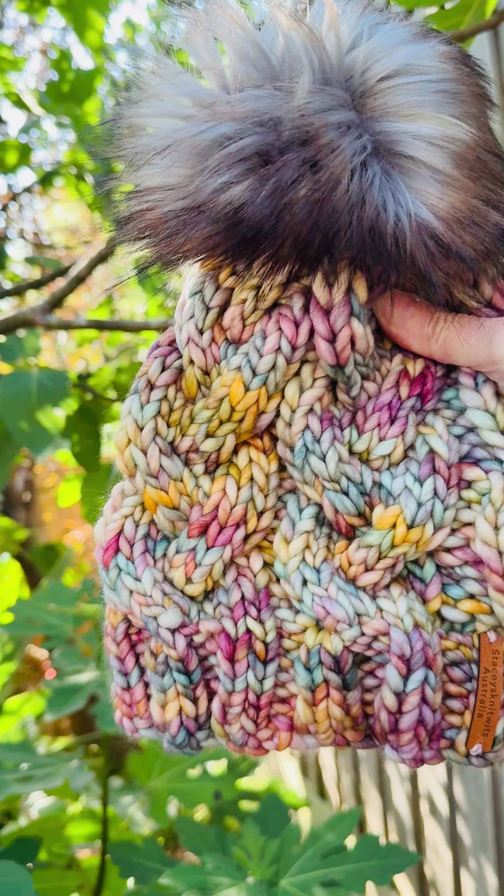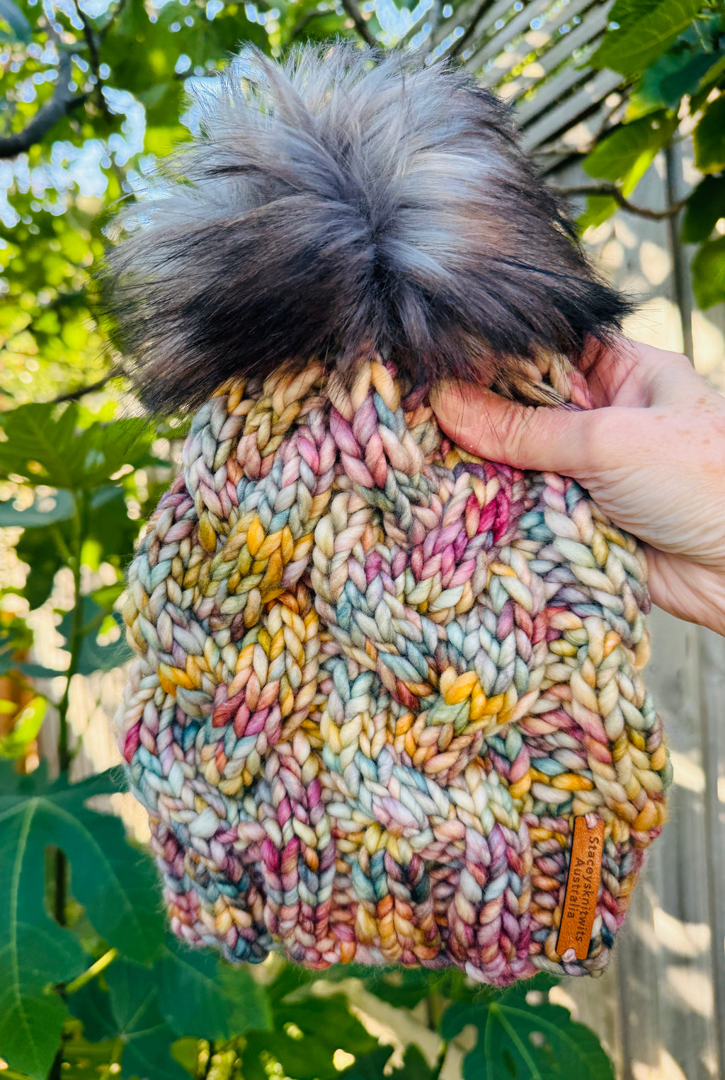 Finished with a signature leather tag from "Staceysknitwits Australia," this beanie not only offers style and warmth but also supports environmentally conscious craftsmanship.