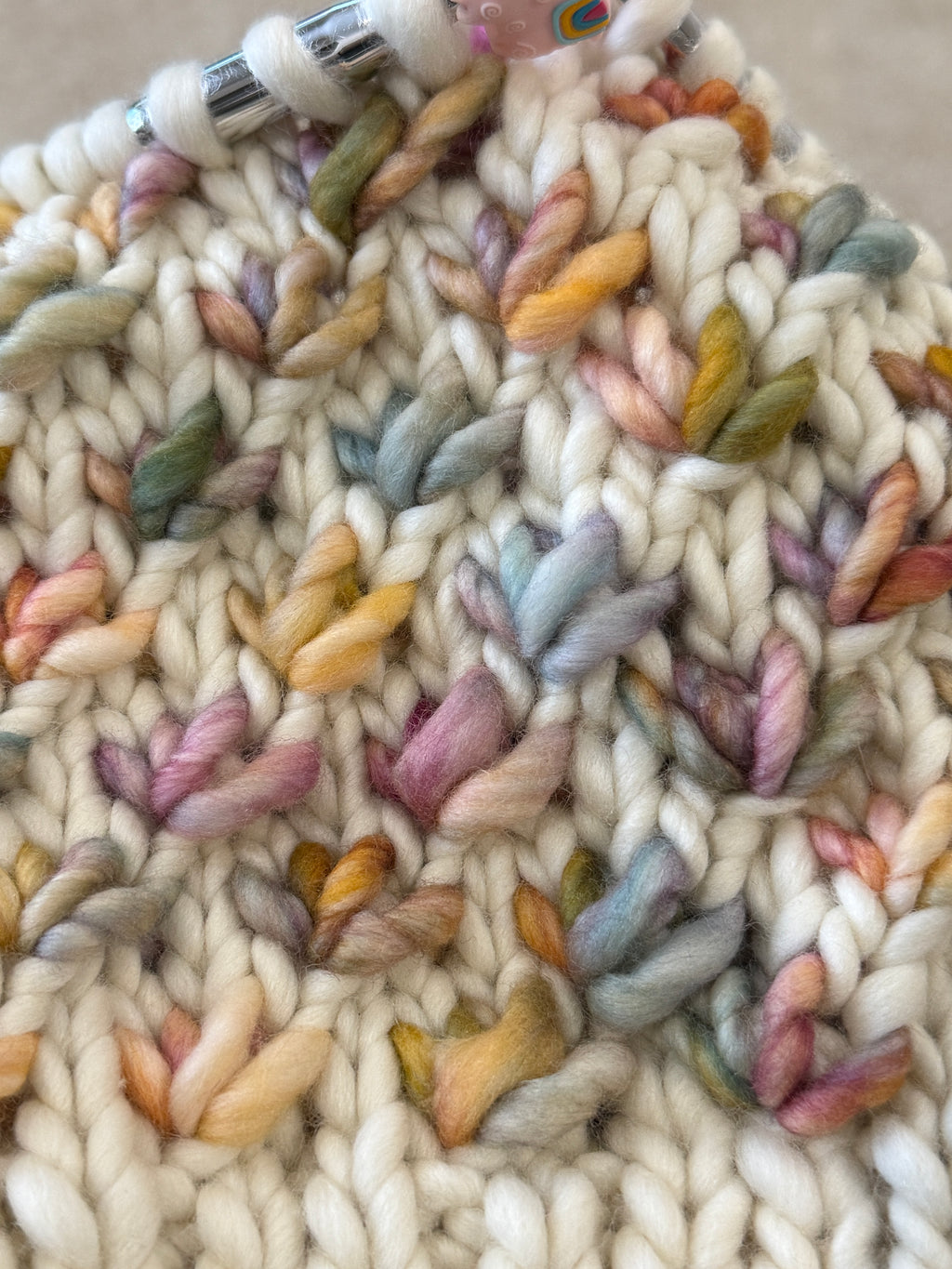 Knitted in the round so is seamless and has a leather tag “Staceysknitwits Australia” .
