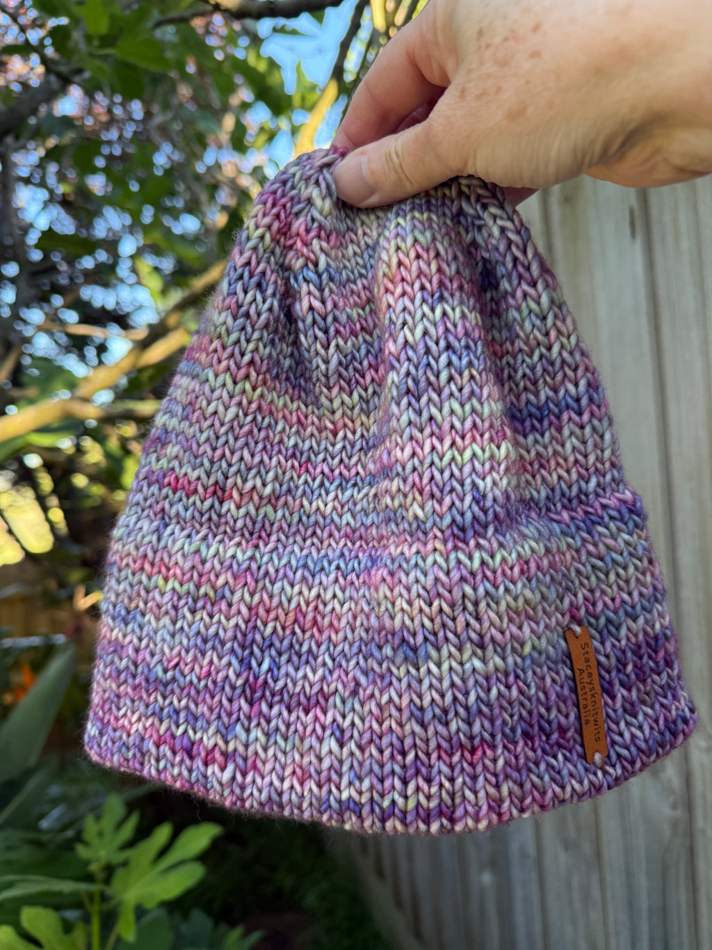 Finished with a genuine leather “StaceysKnitwits Australia” tag, it's the perfect blend of handmade charm and everyday style.