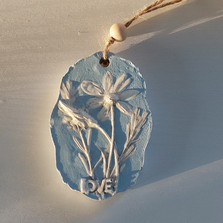 A beautiful raised impression of a Daisy with lavender, created with real flowers from my Sydney garden.