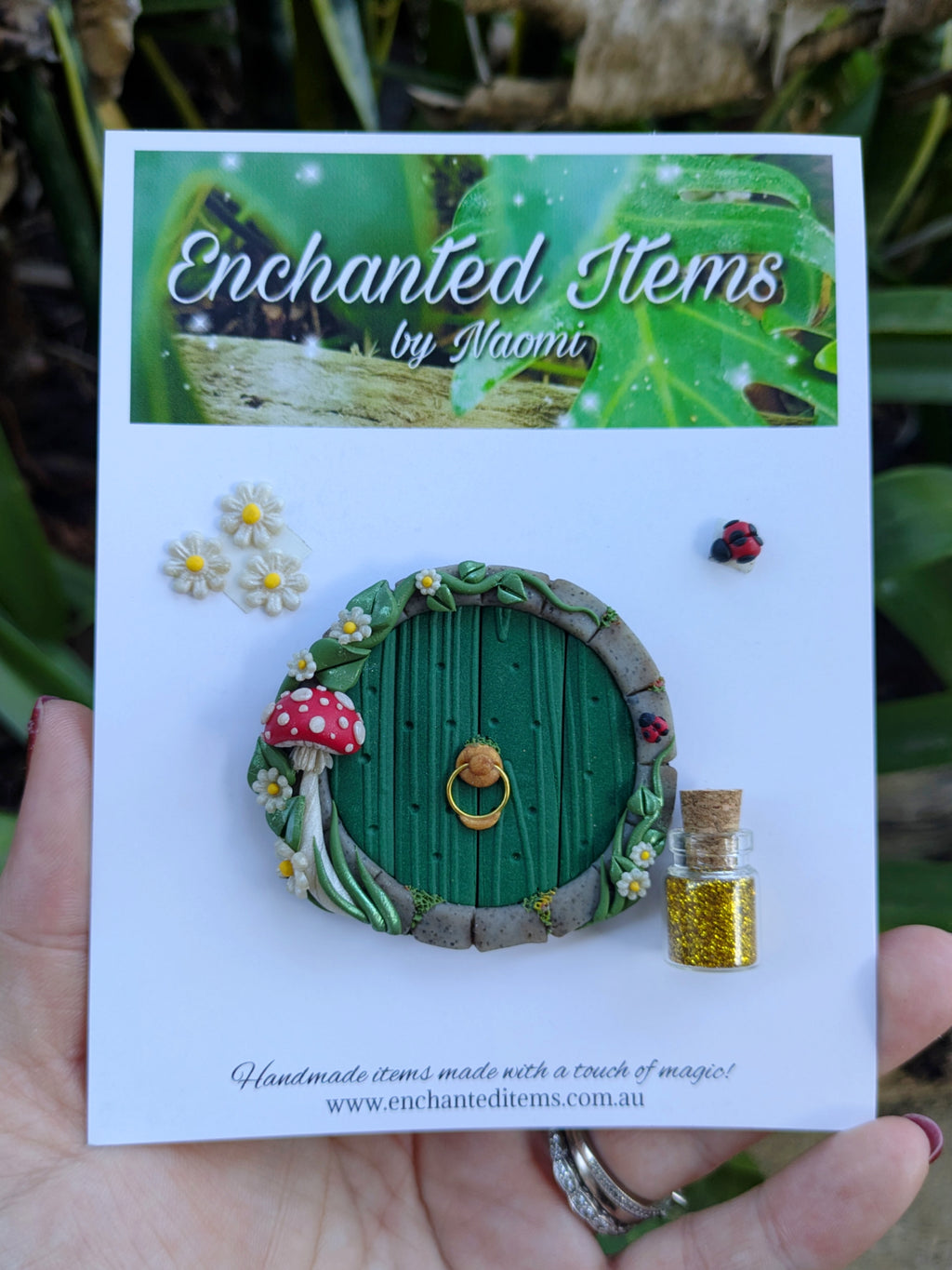 These charming hobbit-style fairy doors are lovingly hand sculpted from polymer clay, with intricate details that make each one truly special.