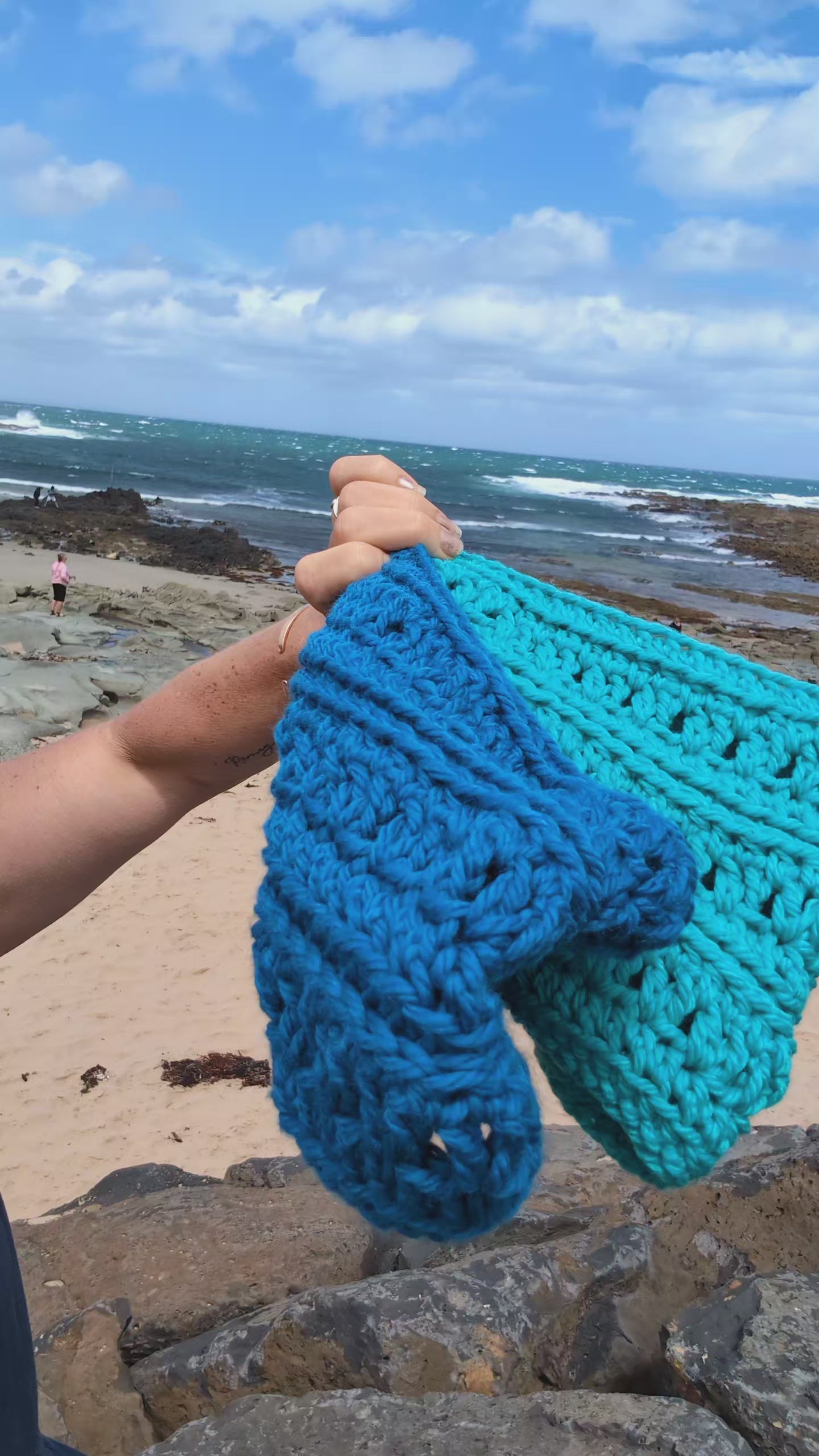 Inspired by the mountain ridge and valley view from my loungeroom window, is my original 'Valley & Ridge' Cowl in this fresh turquoise colour .