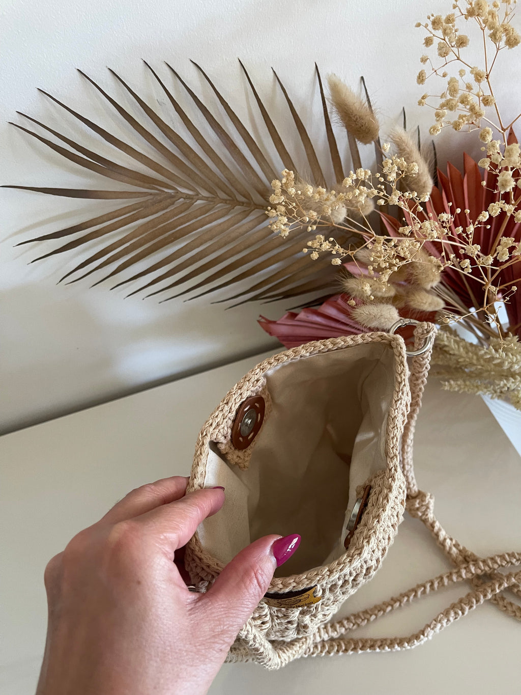 The bag is fully lined to provide structure and durability, with magnetic snap closures to keep your essentials secure. The adjustable crochet strap allows you to wear it comfortably as a crossbody or over the shoulder, making it ideal for daily outings, markets, or relaxed occasions.