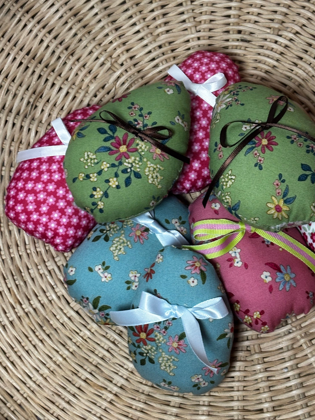 Unlike disposable baskets, these bags are made to last. Fill them with my 3 fabric shaped egg not all the same fabric as image shown but will have little ribbon bow.
