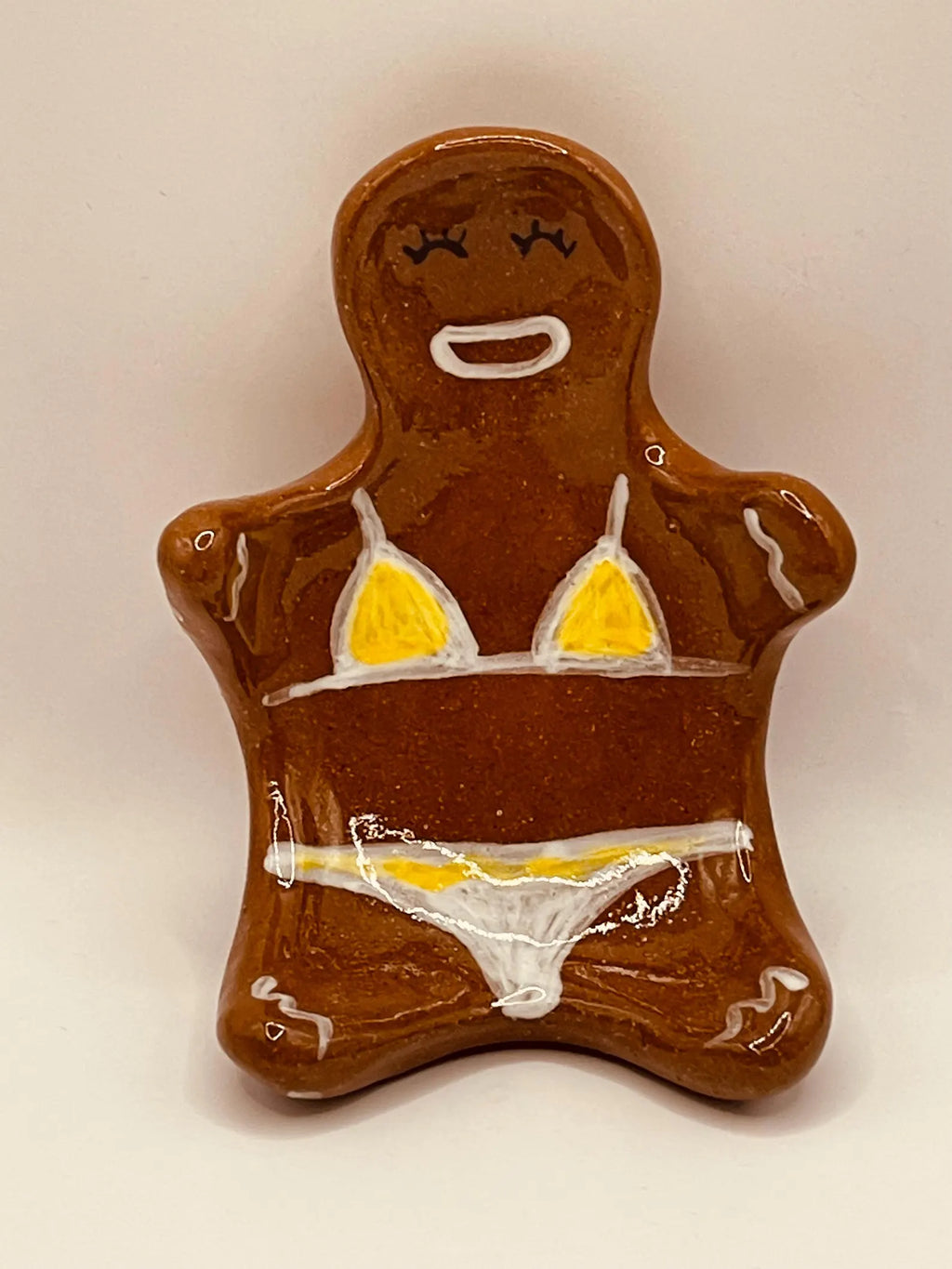 Cute handmade terracotta Gingerbread Man spoon, brush rest or small shallow dish for medication or small treats.