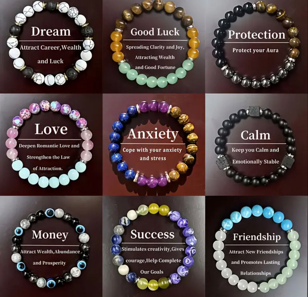 Nine beautiful bohemian crystal bead bracelets are now ready for shipment. Priced at $8 each, or $20 for three, or $54 for all nine.