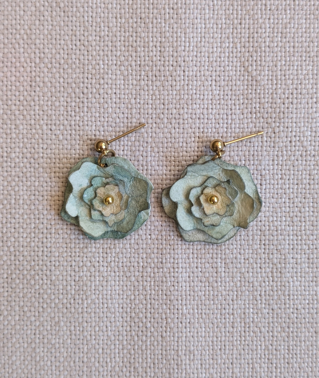 These little blooms are made from layers of watercolour paper, carefully shaped and assembled into soft botanical earrings.