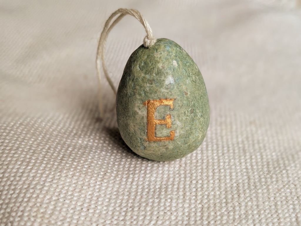 Each one is shaped, sanded and finished individually, then hand-painted with a soft natural pigment and sealed with my own studio-made beeswax blend. The metallic letter is added by hand, creating a subtle heirloom feel rather than a shiny, mass-produced look.