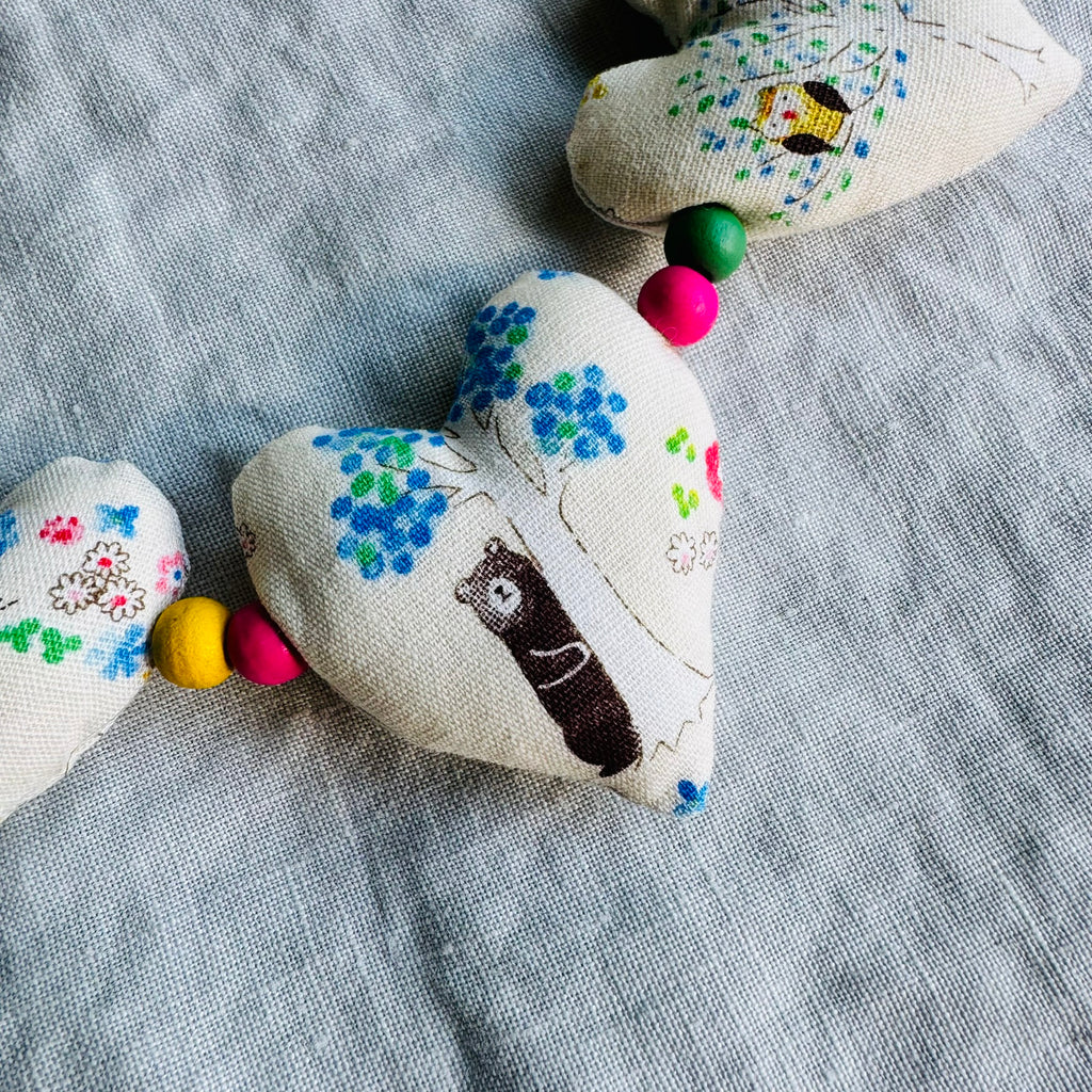 A gentle row of wool‑stuffed hearts, stitched slowly and ready to bring some love to any corner of your home. Each 'String of Love' is made from natural fabrics.