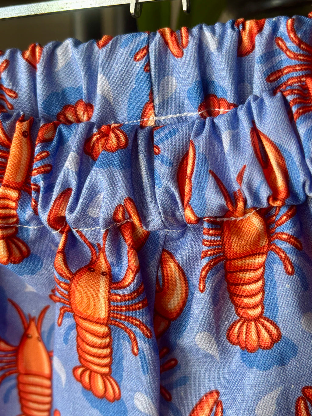 Kids’ Cotton Shorts – Sizes 1 & 2 | “Pinchy the Lobster” Print