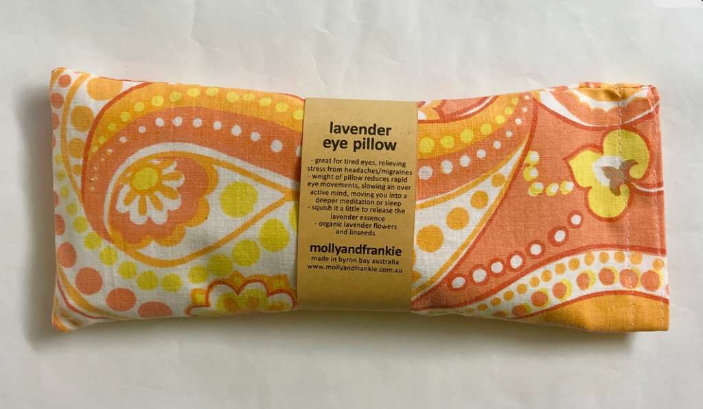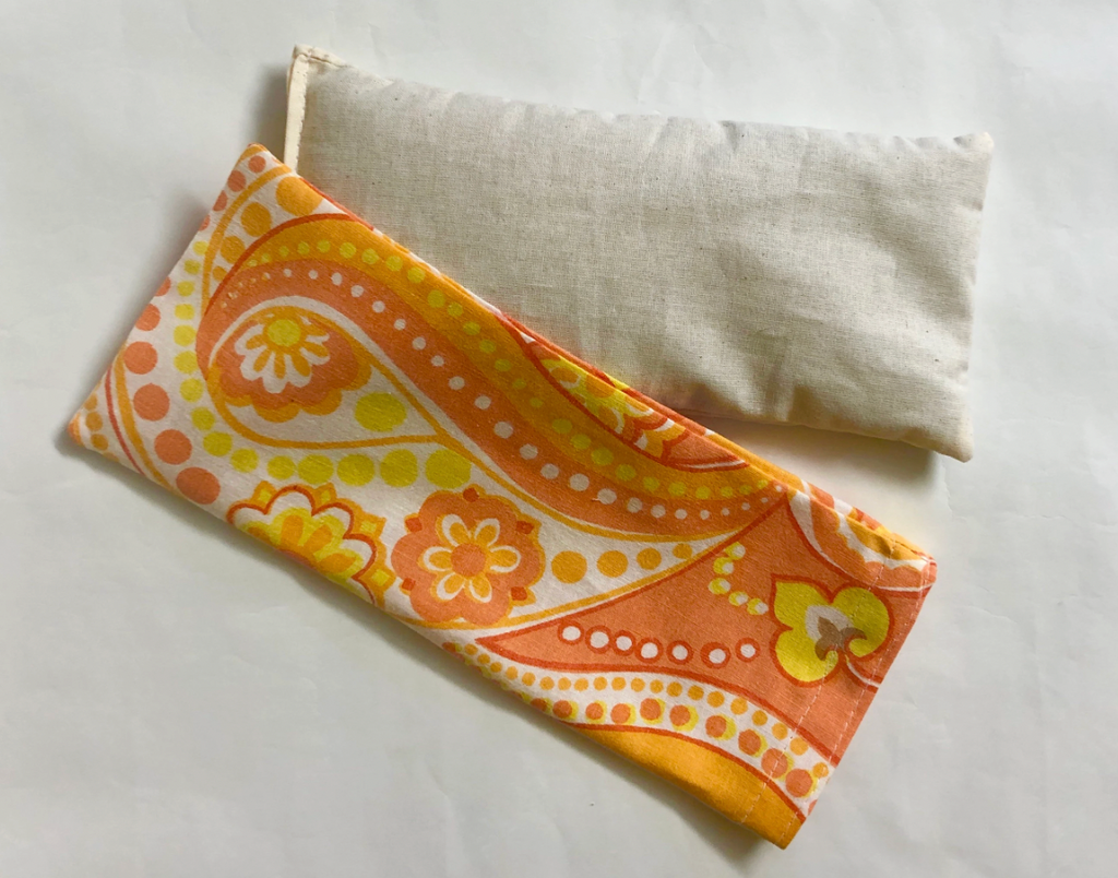 Shaped to sit perfectly on your face, the cover is made with soft vintage fabric and insert is made with calico cotton fabric. Jam-packed with organic linseed and lavender my eye pillows are perfect for relaxation, meditation or soothing away your cares at the end of a busy day.