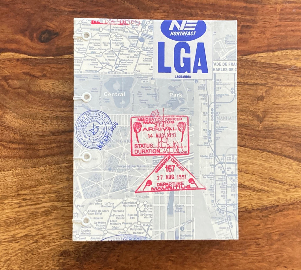 The Coptic Stitch binding allows this journal to lay completely flat, making it perfect for both journaling and sketching. The hard covers are made with a travel themed paper, and the inside paper is high quality Mohawk Smooth 118 gsm.