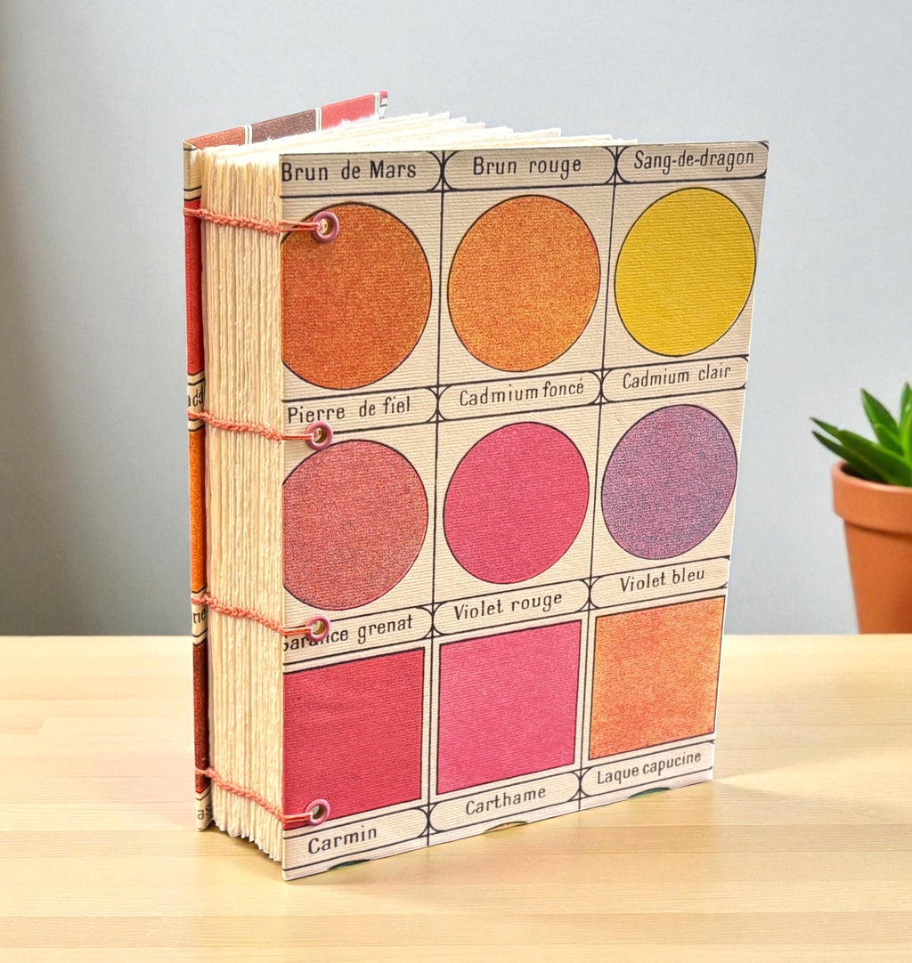 The covers of this visual art diary are made using an Italian paper (Colour chart in French), and the inside covers are Indian Khadi paper.