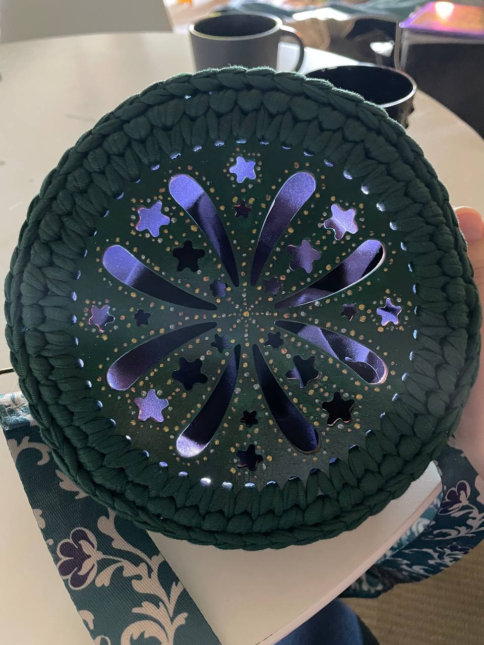 This round crochet crossbody bag features soft, replaceable LED lights that make you shine at night — perfect for festivals, concerts, and casual outings. A free set of spare lights is included, so your glow never fades.