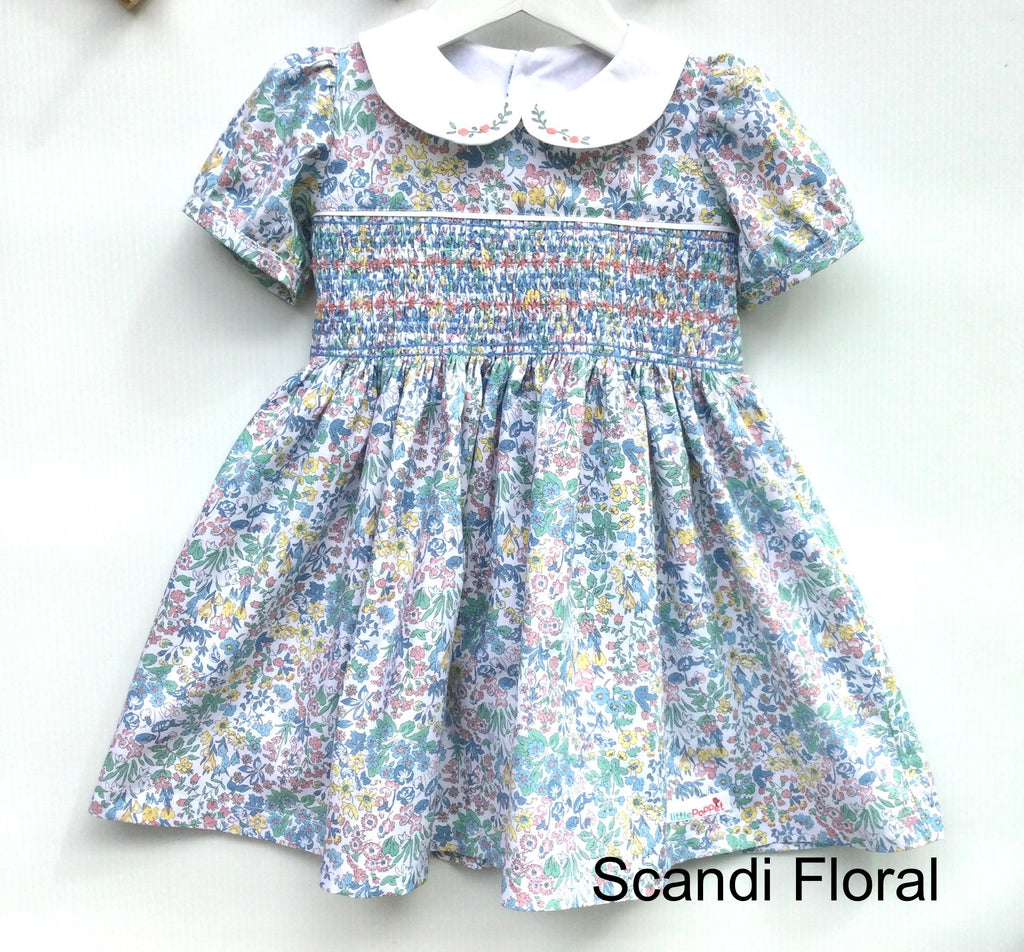 This baby girl’s dress made from lovely Liberty fabric, perfect for a first birthday, special celebrations, or everyday outings.