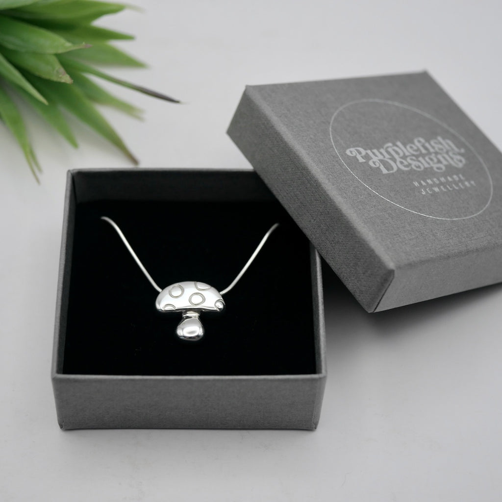 Mushroom - Handmade Sterling Silver Toadstool Pendant with Snake Chain by Purplefish Designs Jewellery
