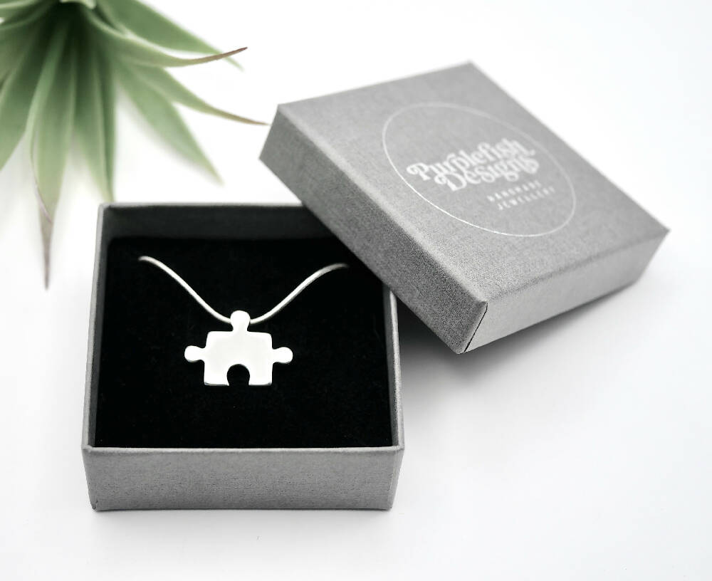 Puzzle - Handmade Sterling Silver Jigsaw Pendant with Snake Chain by Purplefish Designs Jewellery